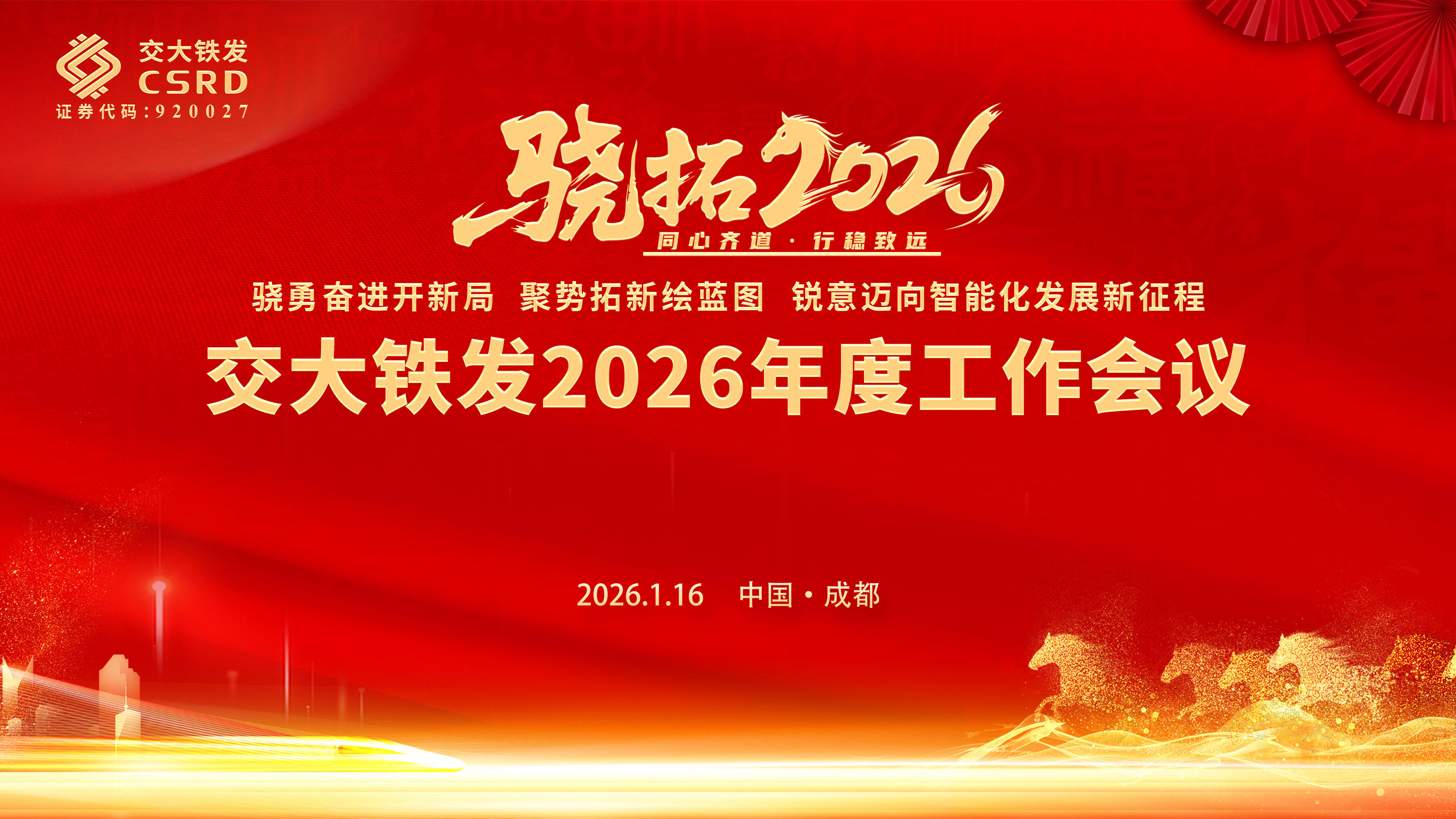 1月16日,交大铁发2026年度工作会议于成都圆满举行。会议全面总结2025年工作,剖析行业形势,部署2026年重点任务,动员全体突破思维定势,勇于创新探索技术新路径,驱动公司数智化升级,紧密围绕国家“人工智能+轨道交通”主线,推动轨道交通基础设施安全技术的深化应用。