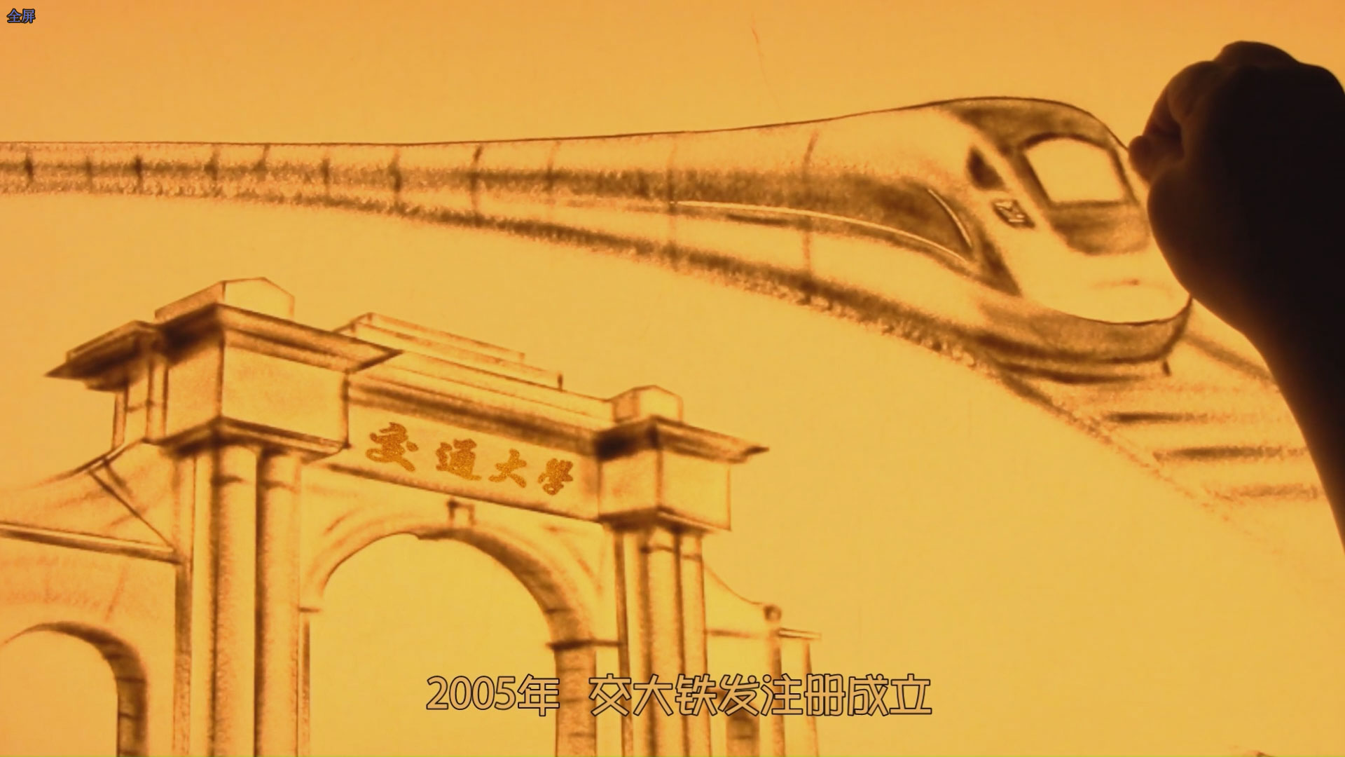 岁月如歌、沙画流转,伴随着悠扬的音乐与光影交织,《时光沙语》拉开晚会序幕。一粒沙,一瞬光,映照出交大铁发二十年来从初心萌芽到破浪前行的奋斗印记,也点燃着铁发人迈向未来征程的坚定信仰。
